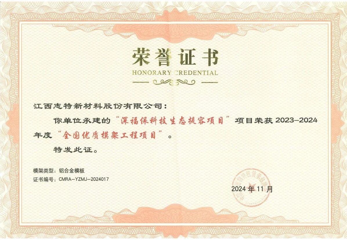Gracias a su excepcional solución técnica y a su excelente desempeño constructivo, el proyecto ha recibido numerosos galardones, entre ellos el de "Sitio de Construcción Excelente de Shenzhen por su Producción Segura y Construcción Civilizada" y el "Premio de Ingeniería Estructural de Alta Calidad de Shenzhen". Asimismo, fue galardonado con el premio "Proyecto de Encofrado y Andamiaje de Alta Calidad" por la Asociación China de Arrendamiento y Contratación de Materiales de Infraestructura, lo que lo convierte en un proyecto de referencia para las aplicaciones de encofrado de aluminio de alta resistencia en el sector.