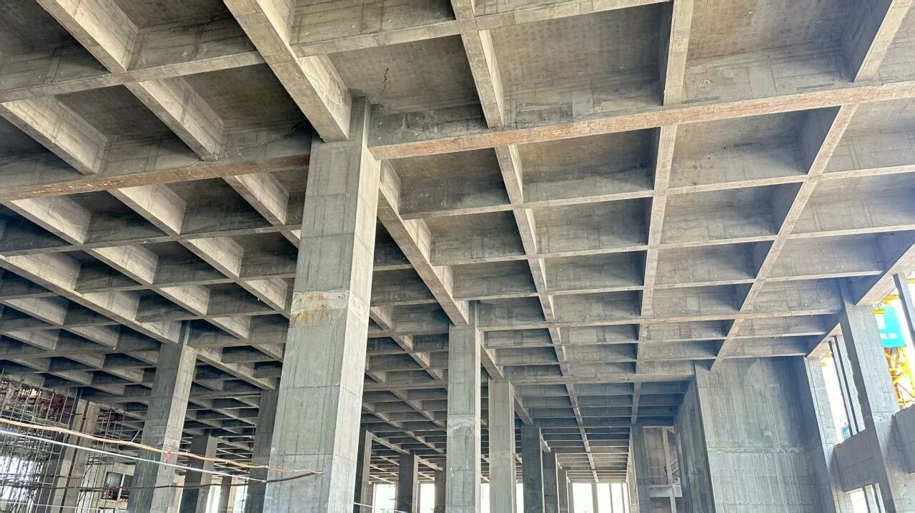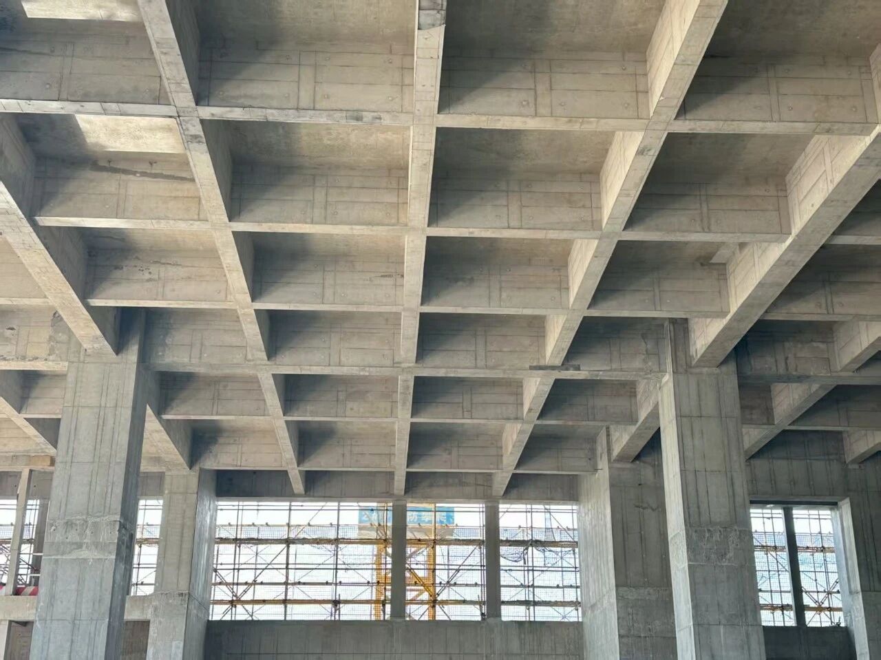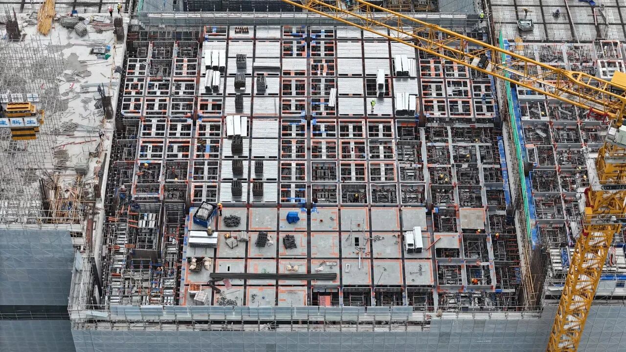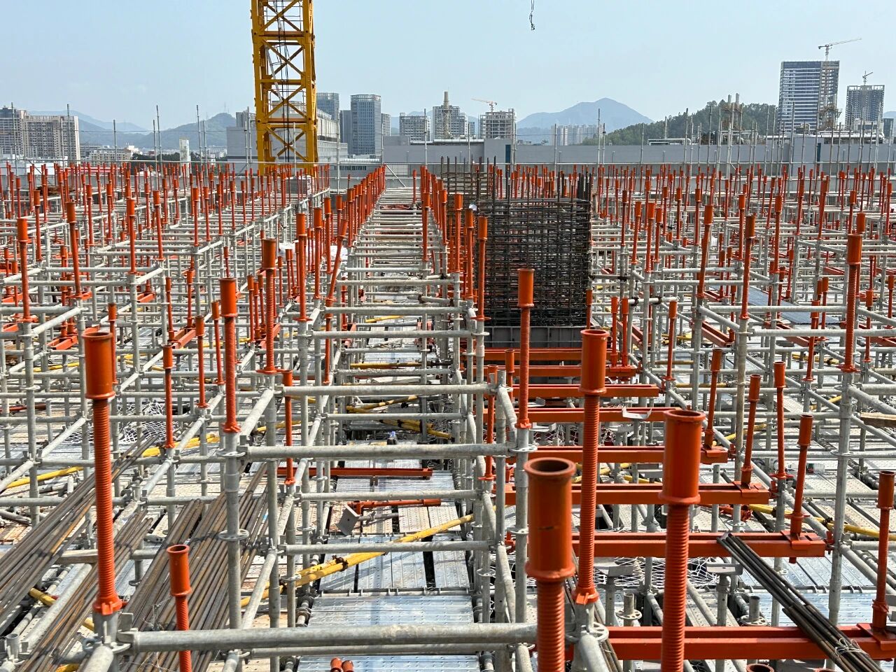 Desde el principio, el proyecto presentó importantes desafíos constructivos. Las alturas de los pisos sobre rasante variaban considerablemente: 10,5 metros en los pisos 1 y 2, 6,0 metros en los pisos 3 a 6 y 4,5 metros desde el piso 7 hasta el último , mientras que toda la estructura sobre rasante debía adoptar una construcción con encofrado de aluminio. Entre estos, la construcción de soporte de encofrado ultra alto para los pisos de 10,5 metros era extremadamente inusual en China en lo que respecta al uso de encofrado de aleación de aluminio combinado con un proceso de desencofrado temprano. Además, el proyecto implicaba grandes dimensiones de las columnas, requisitos de refuerzo complejos, espacio limitado en el sitio y un cronograma de construcción ajustado, lo que hacía que los métodos tradicionales de soporte de encofrado de aluminio fueran incapaces de cumplir con las exigencias del proyecto.